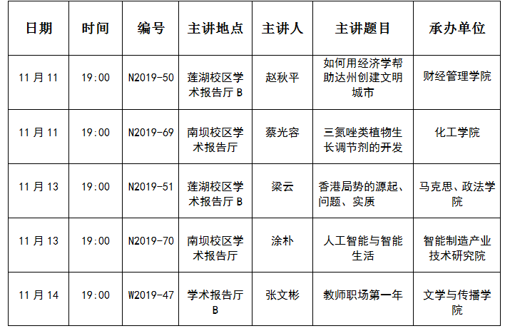 下一条:2019年度秋季第十周学术讲座安排(2019.11.04-11.10)