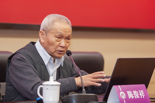 王成端说,我们党一路走来,筚路蓝缕,形成了许多优良传统和精神谱系,这些精神是我们党的传家宝,是筑牢党的初心和使命的红色基因和政治底色。今天,传承和发扬“两弹一星”等精神,是我们义不容辞的责任与历史担当。当前,学校正深入开展“不忘初心、牢记使命”主题教育,希望大家认真学习陈老的报告内容和“两弹一星”精神,进一步坚定理想信念,厚植爱国主义情怀,增强“四个意识”,坚定“四个自信”,做到“两个维护”,承担起我们时代重任,继续爱国奋斗、建功立业,为实现中华民族伟大复兴,为建设特色鲜明优势突出的高水平应用型大学而努力奋斗。