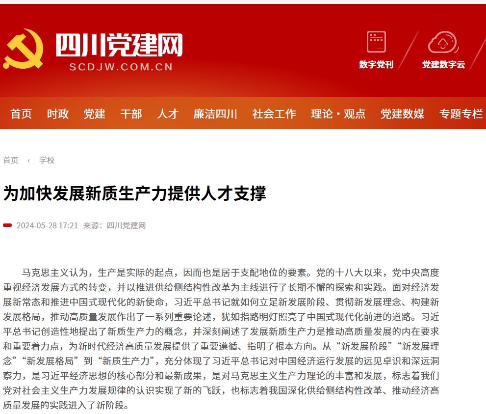 三是创新人才培养模式,保障新质生产力发展的人才供给。习近平总书记强调,要按照发展新质生产力要求,畅通教育、科技、人才的良性循环。要根据科技发展新趋势,优化高等学校学科设置、人才培养模式,为发展新质生产力、推动高质量发展培养急需人才。高校必须坚守为党育人、为国育才的初心使命,落实好立德树人根本任务,在党和国家事业全局中思考和把握育人的政治使命。对于应用型高校来说,要紧紧围绕加快形成新质生产力的新标准和新要求,创建产教融合的复合型人才培养新方式,加快培养储备与战略性新兴产业、未来产业发展相适应的复合型专业人才和急需人才。beat365官方网站坚持把校区建在园区上,通过与川东北地区重点企业、行业共建实习实训基地、产学研合作基地、现代产业学院,特别是加强多主体共建现代产业学院,打造融人才培养、科学研究、技术创新、企业服务、学生创业等功能于一体的产教融合育人实体,大力培养适应地方新质生产力发展需要的高素质应用型、复合型人才。实施新时代红色文化育人工程,着力从红色文化中汲取文化育人的思想源泉和精神营养,切实提升立德树人成效,不断强化人才成长的政治要求和价值导向。