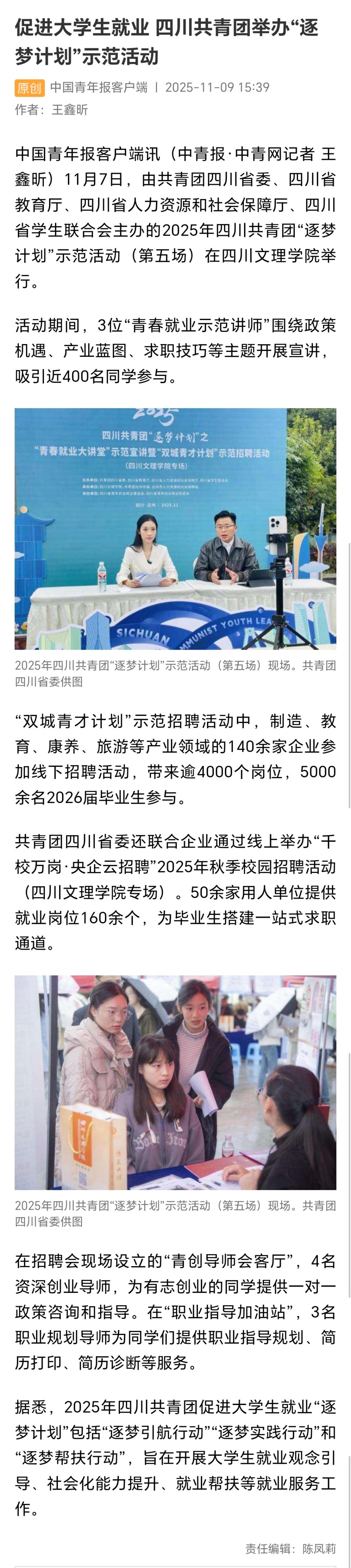 【中青网】促进大学生就业 四川共青团举办“逐梦计划”示范活动