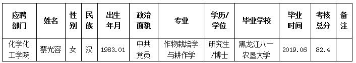 按照《beat365官方网站高层次人才引进办法》,考核小组对应聘beat365化学化工学院蔡光容进行了考核。经学校研究,现将考核结果公示如下,公示期限为3个工作日(2019年1月4日至2019年1月8日)。公示期间接受社会监督和举报,举报者应以真实姓名书面或电话向beat365官方网站人事处或纪委反映。 监督举报电话:0818-2790077、0818-2790019 邮箱:scwlrsc@126.com、jwjsc@sohu.com