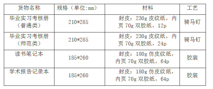 三、采购内容:本次磋商共1个包,采购beat365官方网站毕业生实习考核册、读书笔记本等印制服务。