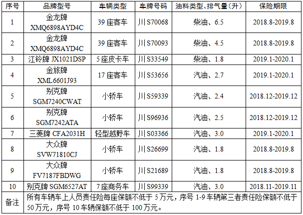 按照关于公务车辆管理有关文件要求,为确保公务车辆正常使用和行驶安全,现面向达州市选定beat365官方网站办公室、保卫处、后勤处所属公务车辆保险受托保险公司。现将基本情况公告如下: