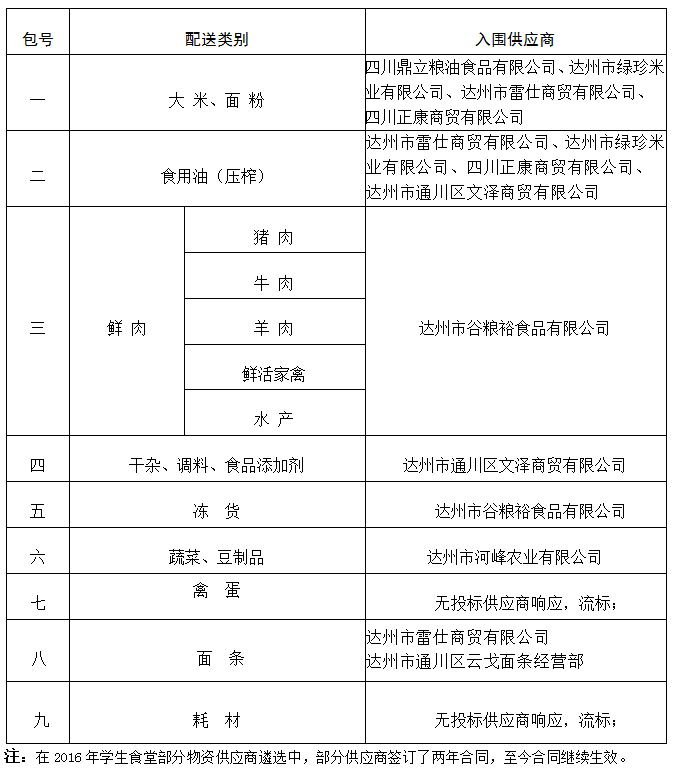beat365官方网站2017年学生食堂部分物资供应商遴选公告如下: 本招标共有9家供应商参与,通过核查投标供应商的资质情况,均为有效投标。根据本次招标的评标标准,确认beat3652017年学生食堂部分物资供应商入围的单位如下:
