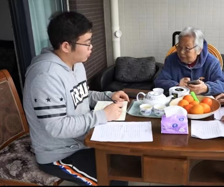 2019级康养产业学院的林涛,2021年,在党的百年华诞之际,作为学校第十一期青马班学员,在离退休工作处郑老师的带领下,以一名青年党员的身份前去慰问刘老师。林涛说:第一次和刘奶奶结缘,奶奶跟我聊了很多,幸福是奋斗出来的,是奶奶传递给我最多的价值观。毕业后留在成都工作,也时常会去拜访奶奶。奶奶善于学习,善于接受新鲜事物,会使用手机微信,高兴的时候还发发朋友圈。94岁的奶奶坚持学习党报党刊,关注国家大事,收听收看党的二十大开幕式,每次交流都会给我阐述最新的理论观点,给我上生动的党课,每次听奶奶谈及信仰二字,都觉得奶奶目光如炬。也正是这种交流,让我这名青年党员,时刻审视着自己的党性,坚定着自己的信仰。