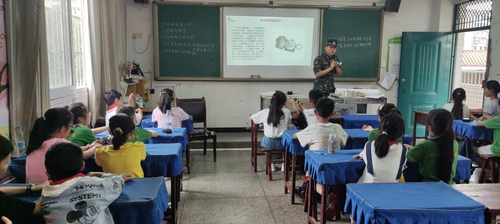 从2021年到2023年,经历了近两年的教学实践过程,他带领一部分退役大学生士兵团队共计培养了3000余名中小学生、1200余名幼儿园学员,配合学校加强学生德育和爱国主义思想教育,组织开展以“传承红色基因,担当强军重任”为主题的公益国防教育军事课进校园活动19场。其中,孩子们感受最深切的一句话:“今天的国防教育很特别,居然可以体验枪炮!长大以后我也一定要去当兵。我特别喜欢这一次的国防教育活动,增长了我的见识,刷新了我对军训的认识,让我更加热爱军事。”是的,他作为国防教育的领头雁,肩负的责任和使命就是要将国防教育这一课上好、上扎实、上得融会贯通,要让祖国的花朵灿烂开放,给予孩子们政治启蒙,树立孩子们正确的社会价值观,把崇军拥军思想筑立于孩子们的心中。