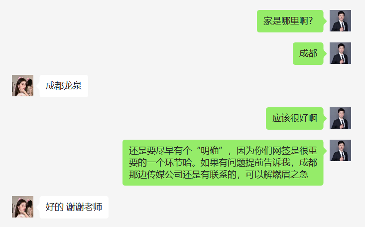 白老师说:“我个人认为指导学生就业可能对学生的人生产生影响,这个工作马虎不得。”白老师建立了微信群,时时以公告的形式提醒孩子们注意事项,并催促监督。同时还逐一与每个孩子单独聊天,了解他们当前的心理状态和对于自己接下来的计划。他坦诚地跟孩子们说,就算没有计划也是计划。白老师说得最多的一句话就是“遇到各种困难和纠结,一定要第一时间跟老师沟通,让老师掌握你的情况”。白老师认为,在这个沟通阶段,一定不要让孩子们觉得“是任务必须完成”;也不要让孩子们觉得“老师是在催她”。当非常纯粹和善意的事情变得有了其他的目的,这个事情就增加了难度。一位老师不管多么厉害,职称多高,拿过多少奖,这些都不足以去影响孩子们真正的对我们的信任,老师只有推心置腹地与学生沟通,才能赢得孩子们的信任。以信任为基础,事情就事半功倍了。学生张雪童说:“虽然我与白老师见面的次数不过3次,但是我对他的信任度是极高的,能得到他的指导真的是我的幸运。在他的指导下,我早早地完成了毕业论文,现在也签约了中铁集团从事新闻宣传工作。”