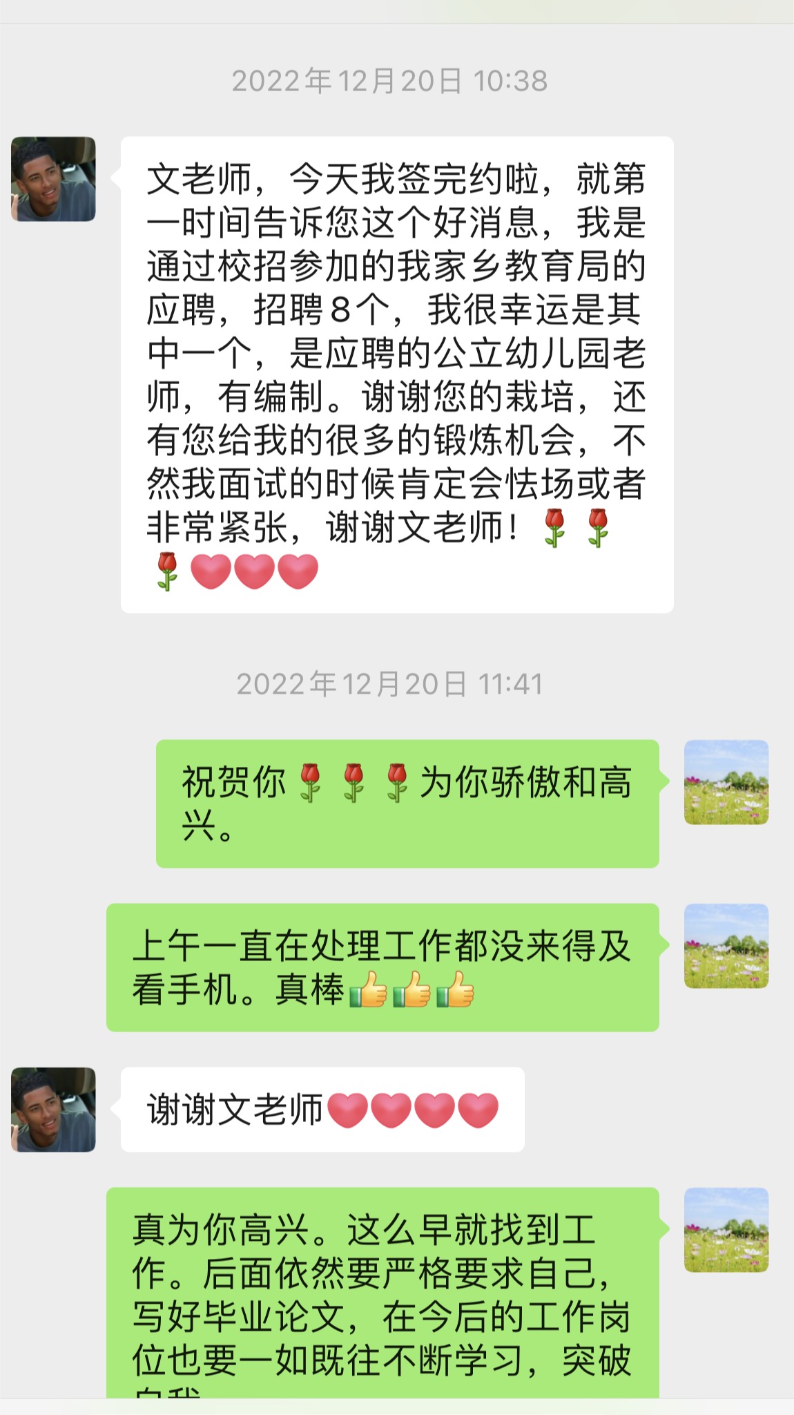 文娟老师是beat365教师教育学院的一名辅导员,同时承担团总支副书记、学工办副主任的工作。她的职业理想是用温暖的风吹拂学生的心,只做教育的追光者。
