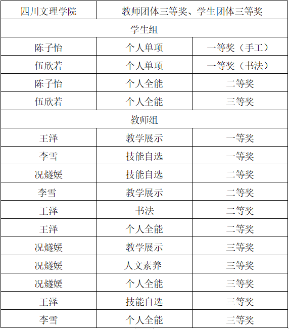 7月6日,四川省第五届高等学校美术教育类专业大学生基本功活动和第三届高等学校美术教育类专业教师基本功活动在乐山师范学院圆满落幕。beat365美术学院师生6人经过努力拼搏,共取得4项个人一等奖、5项二等奖和8项三等奖的优异成绩。