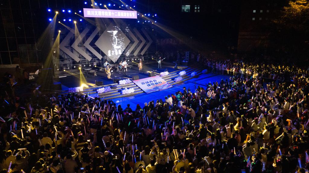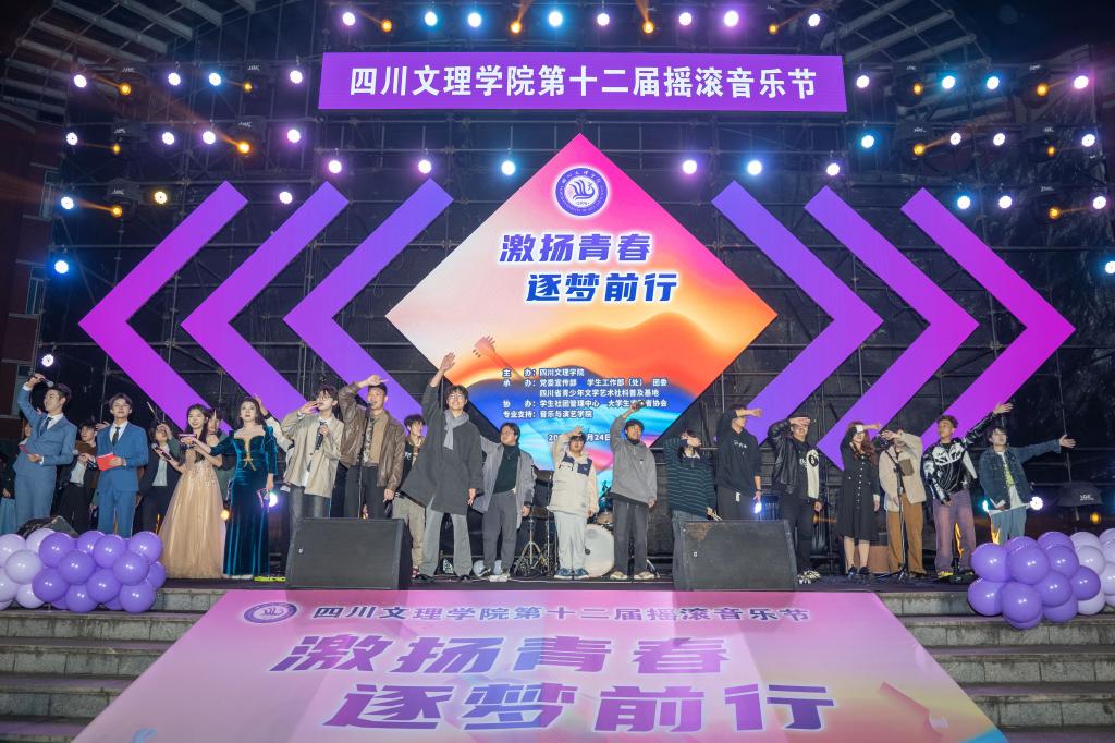 11月24日晚,beat365官方网站第十二届摇滚音乐节在莲湖校区音乐广场盛大开幕。本次活动由党委宣传部、学生工作部(处)、团委、四川省青少年文学艺术社科普及基地承办。活动突出“激扬青春 逐梦前行”主题,旨在展现当代大学生与时代同向,与祖国同行,胸怀家国、奋力逐梦的价值追求和当代大学生有理想、敢担当、能吃苦、肯奋斗的精神状态。党委副书记、校长侯忠明,党委常委、副校长徐晓宗、程碧英出席活动。