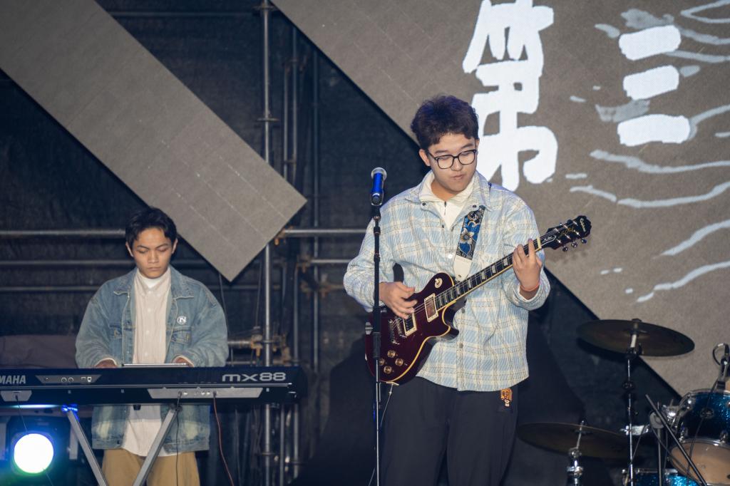 以一朵花的姿态行走,活出热爱的红,让一生花开成画、花落成诗的“埋淌乐队”拉开音乐节的帷幕,四位主持人宣布第十二届校园摇滚音乐节正式开始。原创歌曲《亢龙有悔》激情澎湃,表达了作为大学生、作为新青年的态度,引爆现场气氛。“第三象限乐队”演唱的歌曲让我们拾起对生活的勇气,感受独有的浪漫。在浪潮般的掌声中,邀请到的校外嘉宾“沙丁鱼乐队”闪亮登场,搏得一片喝彩。随后观众情绪高涨,把民谣和摇滚两者结合在一起的“月莱乐队”,希望像球状闪电一样可以穿透墙壁、直击内核、无惧风雨、屹立坚强的“球状闪电乐队”,用音乐诠释内心的世界的“群青乐队”轮番上阵,激情四溢的演唱,彰显对音乐的热爱与执着,掀起一股又一股摇滚浪潮,特别是音乐与演艺学院的李黎霞老师为大家带来的歌曲《Unstoppable》,彻底让观众进入摇滚殿堂,音乐海洋,感受到音乐所带来的希望和力量。最后,全体演员为我们共同唱响《星辰大海》,愿中国青年都摆脱冷气,只是向上走,去爱温热璀璨的星河。