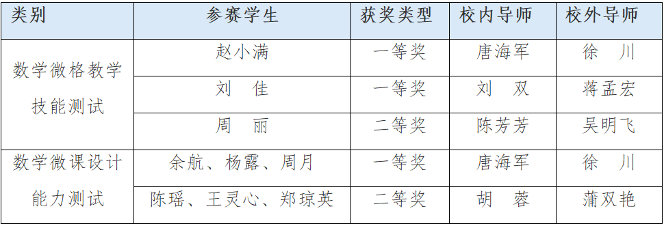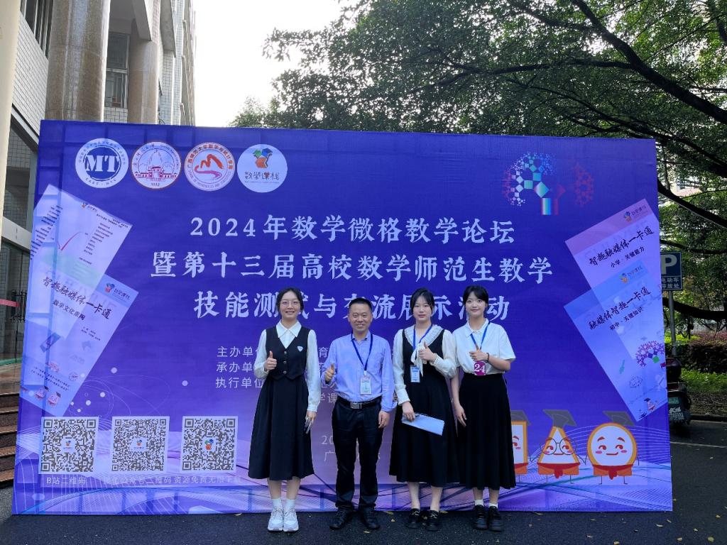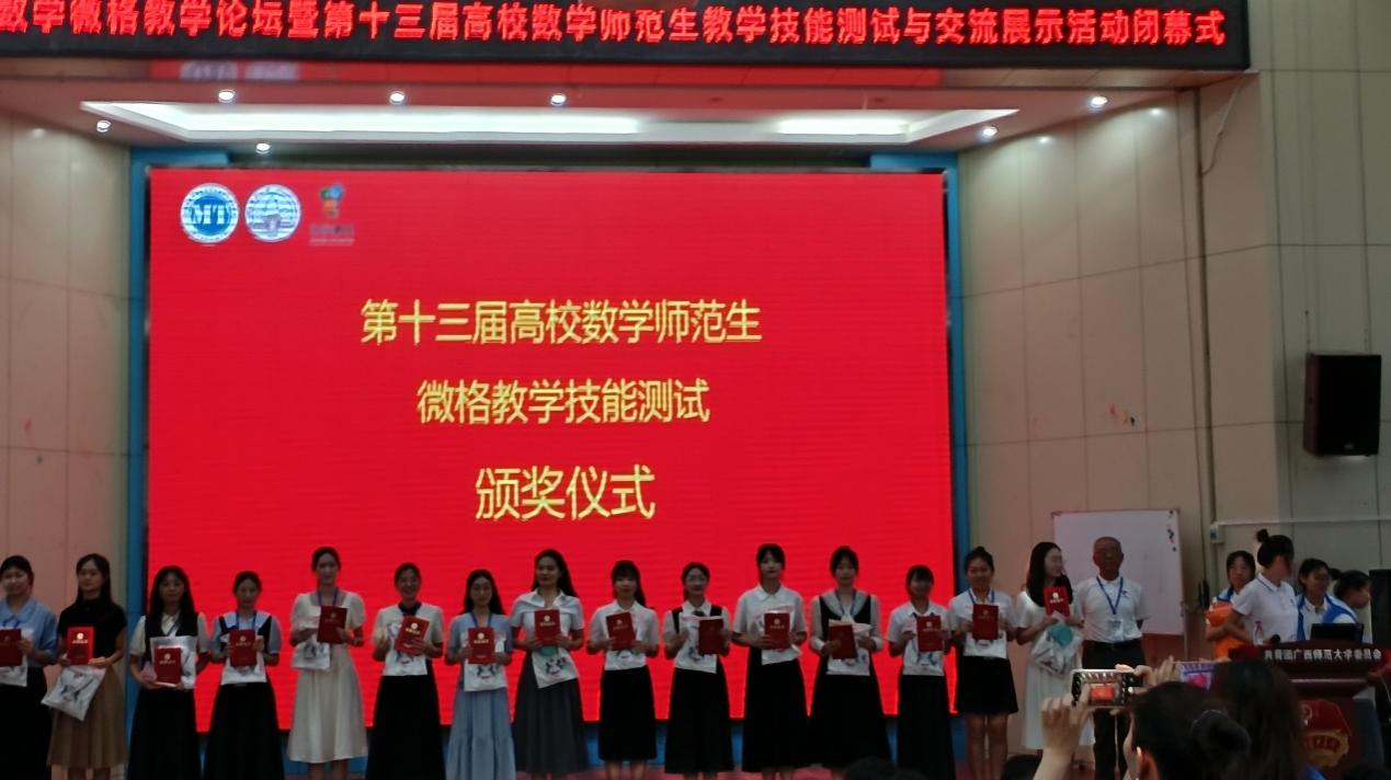 5月17日至20日,2024年数学微格教学论坛暨第十三届高校数学师范生教学技能竞赛与交流展示活动在广西师范大学落下帷幕,本次大赛由中国教育技术协会微格教学专业委员会主办、广西师范大学数学与统计学院承办,来自华中师范大学、陕西师范大学、西南大学、四川师范大学等在内的90所院校1611名选手参加比赛。beat365数学学院学生通过初赛、决赛选拔,在数学专业教师和校外兼职导师的协力指导下,在微格教学技能竞赛中,荣获一等奖2项,二等奖1项;在微课设计能力测试中,荣获一等奖1项,二等奖1项。beat365官方网站数学学院荣获优秀组织单位称号。