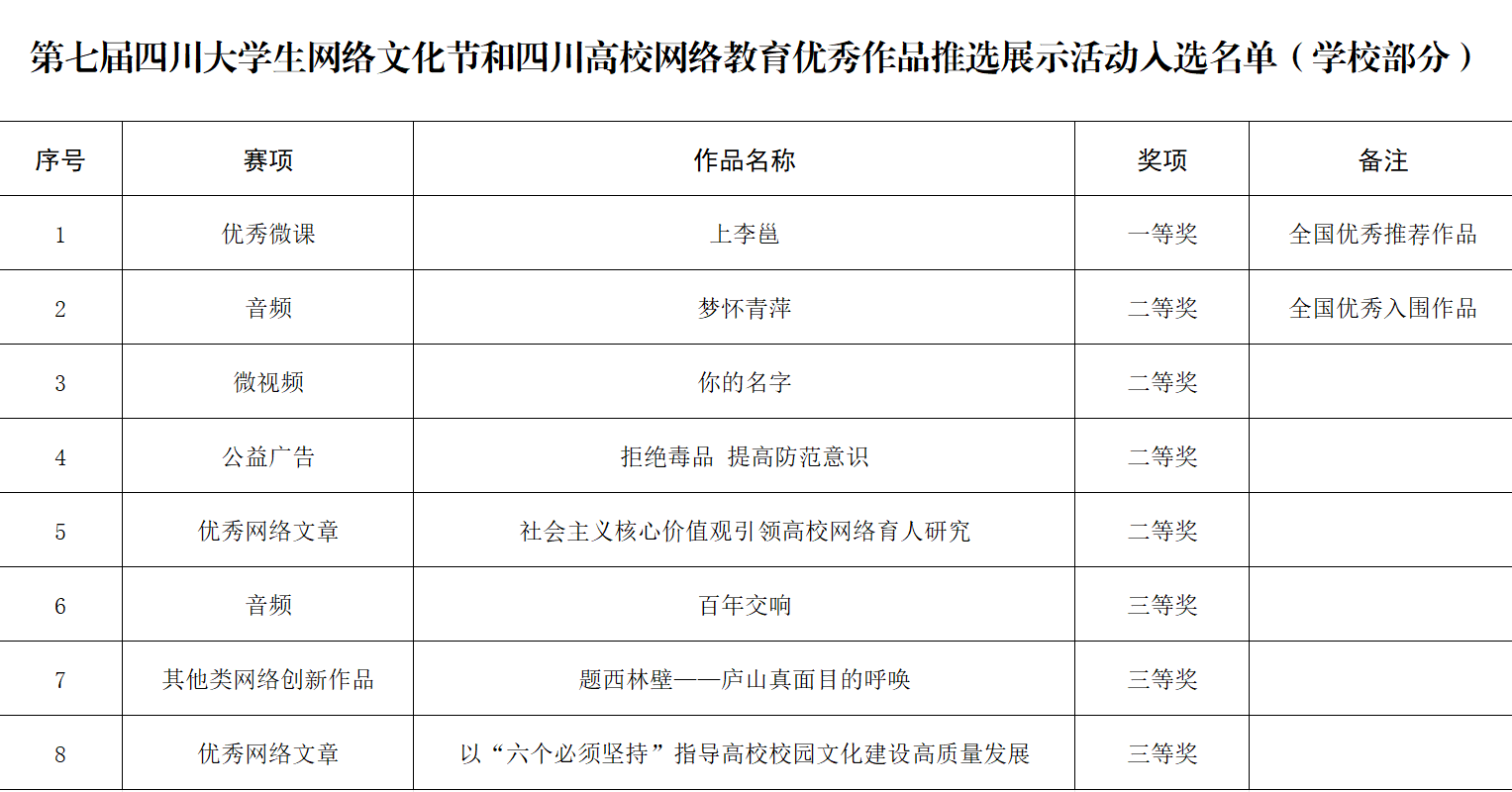 近日,中共四川省委教育工作委员会、中共四川省委网络安全和信息化委员会办公室公布了第七届四川大学生网络文化节和四川高校网络教育优秀作品推选展示活动入选名单。beat3658件作品成功入选并获奖。