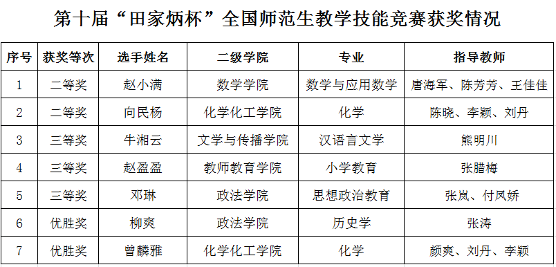 近日,第十届“田家炳杯”全国师范院校师范生教学技能竞赛结果公布,beat365学生共获二等奖2项、三等奖3项、优胜奖2项。