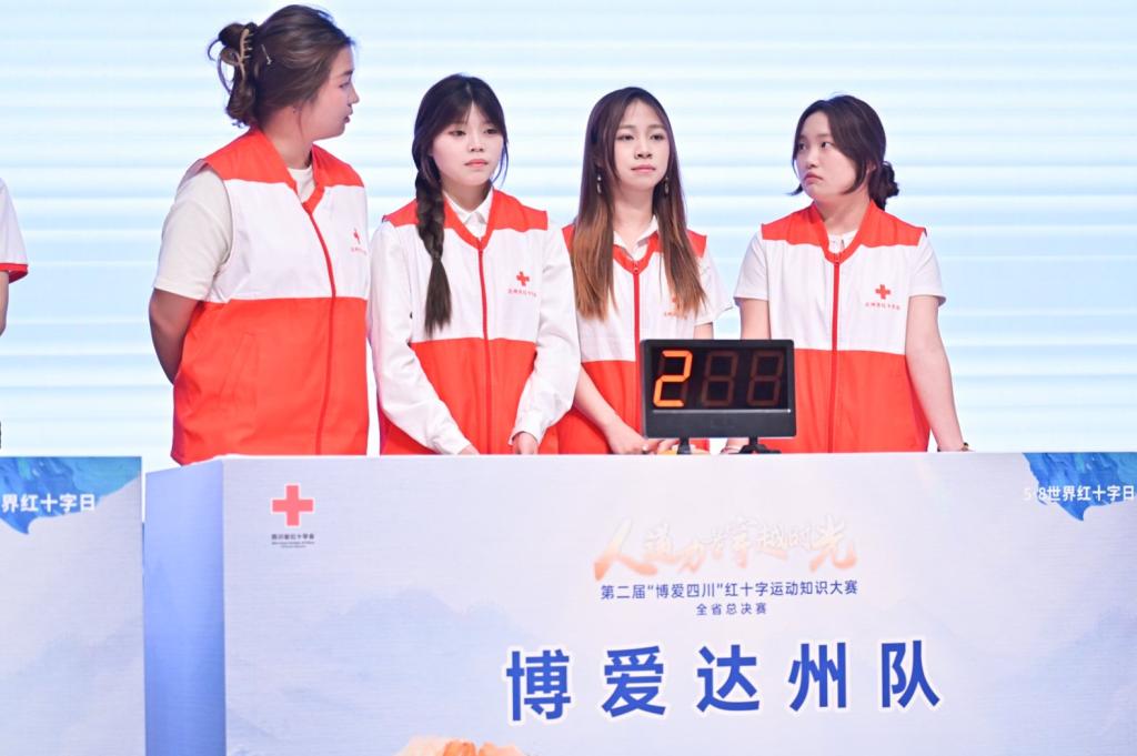 经过学校和达州市红十字会的严格选拔,四位同学脱颖而出,代表达州市参加本次省级决赛。比赛中,队员们展现出扎实的知识储备和出色的团队协作能力:在必答题环节沉着应对、准确作答;抢答环节反应敏捷、配合默契。最终以总分第二的优异成绩赢得现场观众的热烈掌声。