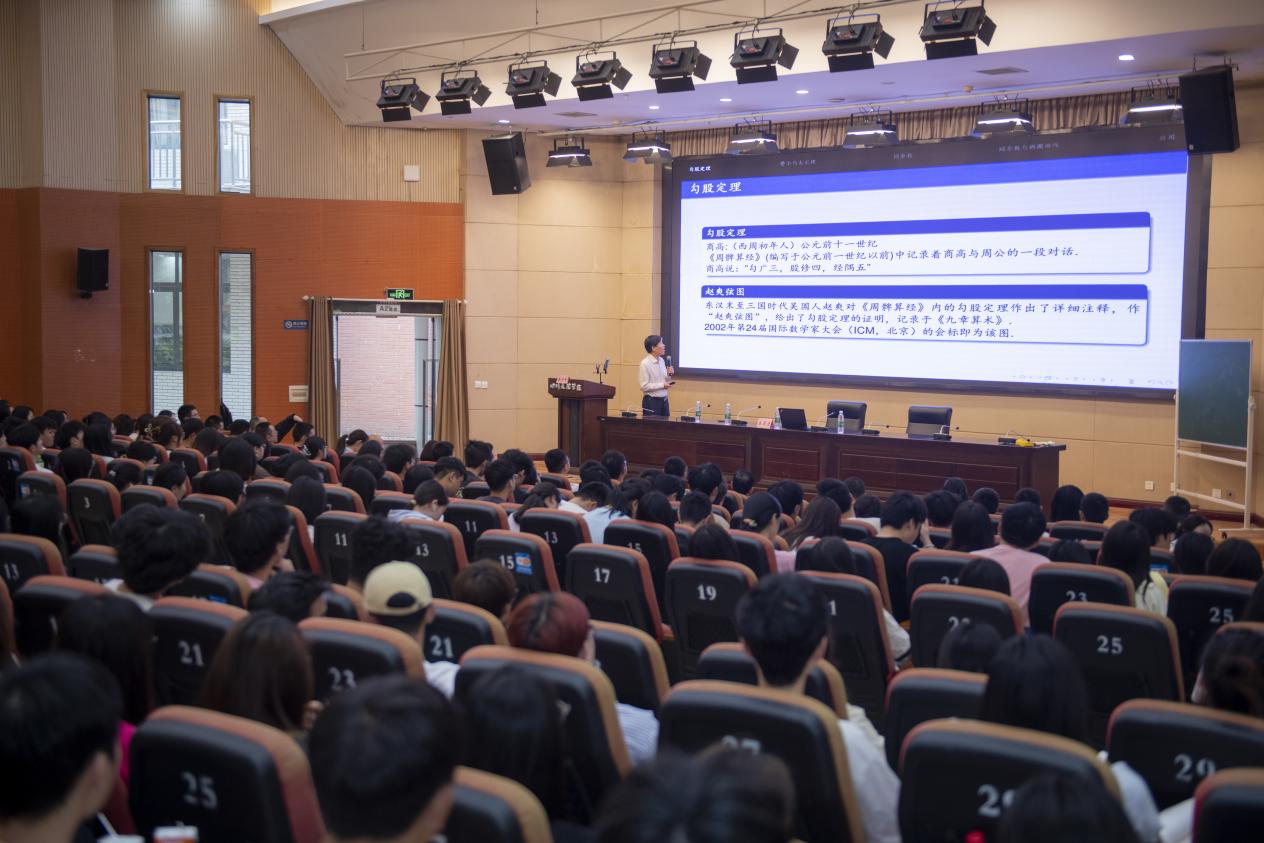 秦厚荣教授从勾股定理的基本定义出发,探讨了这一数学原理的历史渊源、数学证明、以及在不同文化和时代中的表现形式。之后通过介绍费尔马大定理以及具有千年以上历史的同余数问题,介绍了勾股定理对数论这门迷人学科的重大影响。他指出,解决同余数问题实际上是要证明千禧年七大数学问题之一的BSD猜想(Birth and Swinnerton-Dyer Conjecture)。讲座结束后,在座师生与秦厚荣教授就相关数学问题进行了深入地探讨和交流。