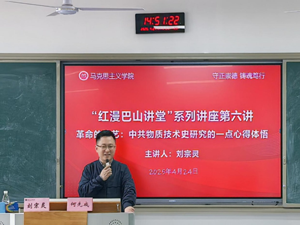 4月24日下午,电子科技大学马克思主义学院副院长、博士生导师刘宗灵教授做客“红漫巴山讲堂”,于莲湖东区B310作题为《革命的技艺:中共物质技术史研究的一点心得体悟》的学术讲座。刘宗灵分享了相关研究结果,展现了中国共产党在艰苦条件下积极探索、不断创新的精神。