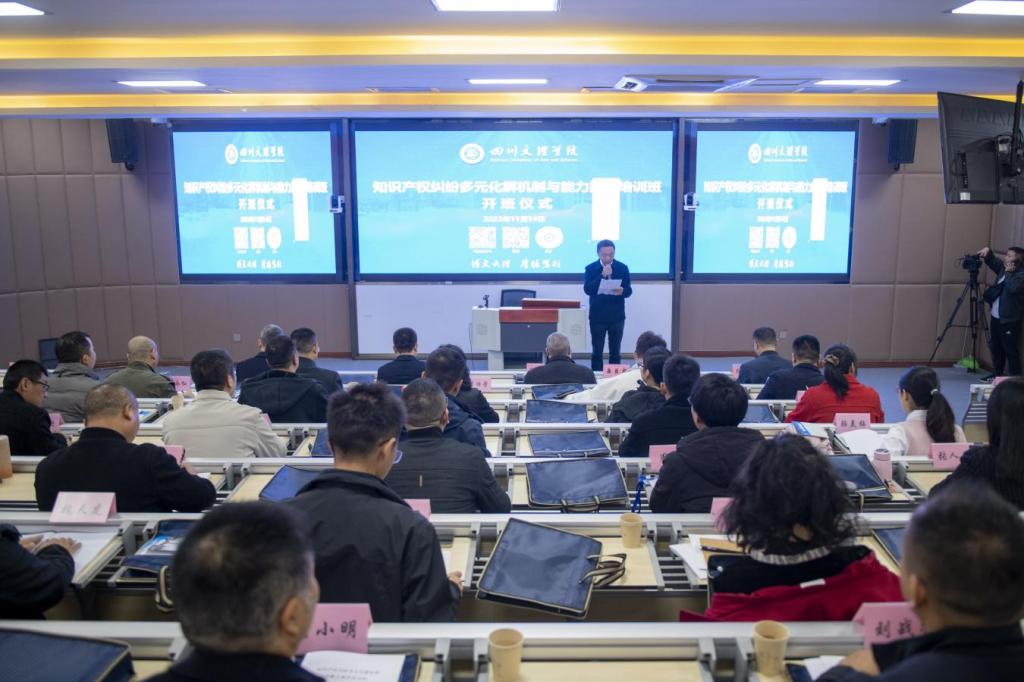 11月14日,知识产权纠纷多元化解机制与能力提升培训班开班式在beat365举行。副校长徐晓宗致辞,达州市市场监督管理局党组成员、副局长郑渠讲话,政法学院、知识产权学院院长刘长江参加开班式。政法学院、知识产权学院党委书记岳臣忠主持开班式。