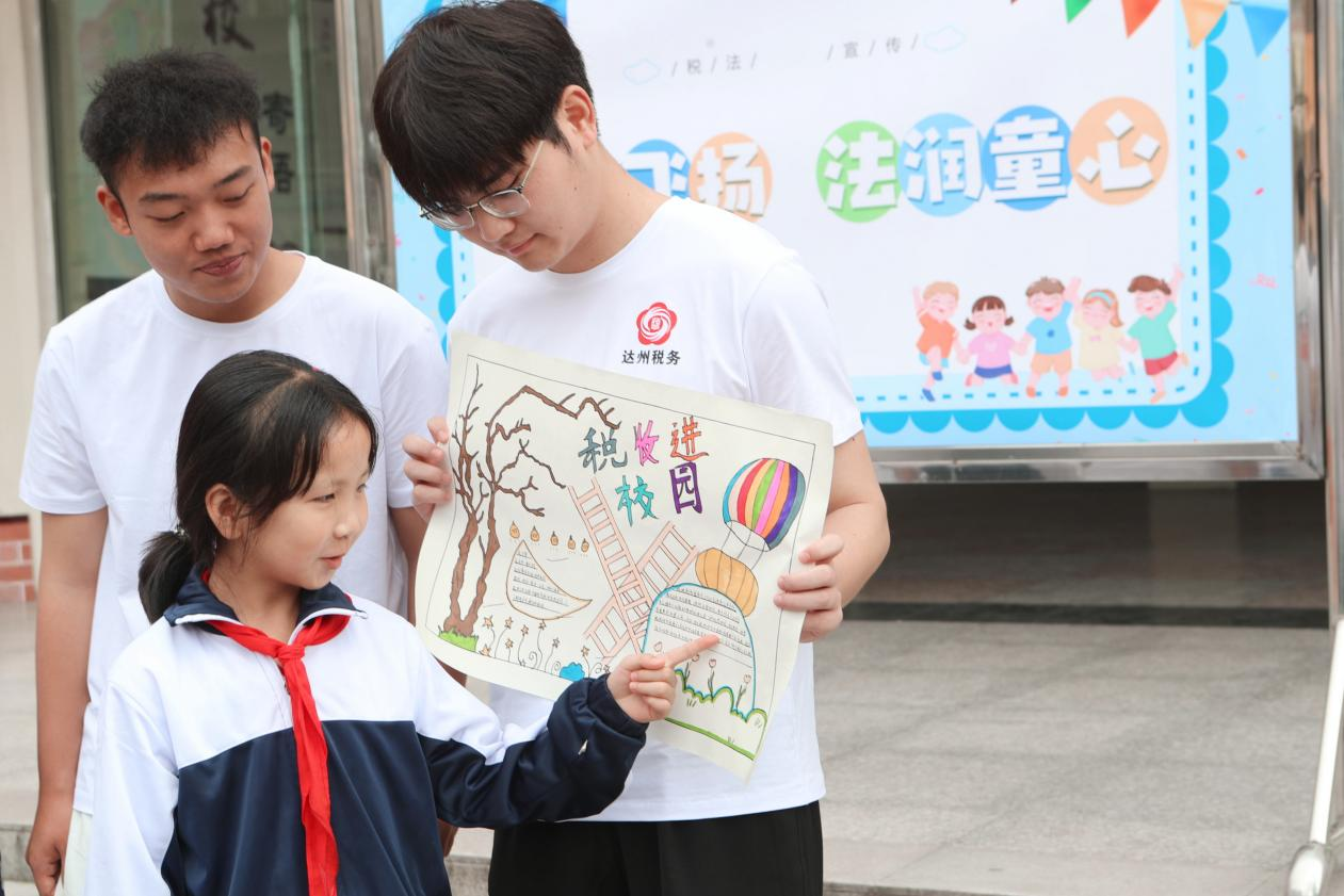 活动首站到百节镇中心学校开展普及税法小课堂活动。税务局宣传队员们以浅显易懂的语言向孩子们讲解税收知识,使他们了解税收的重要性、纳税的义务和权利。志愿者们则运用生活中的实例引导孩子们思考并加深对税法的理解,同时指导孩子们精心绘制税法手抄报。