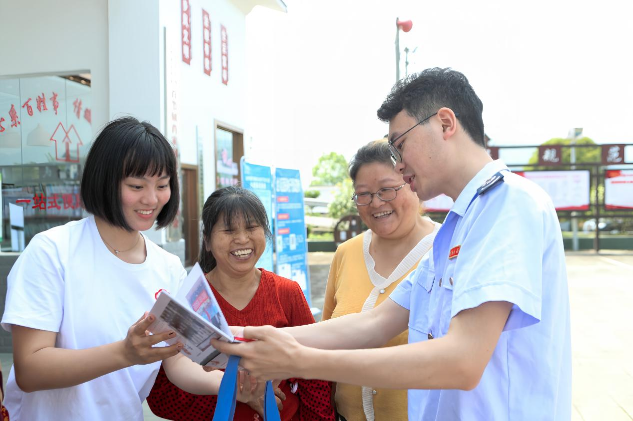 第二站,税收普法宣传队前往肖家村村委会,税法宣传队为村民讲解“税费解忧e站”的作用和意义,并辅导在场村民运用“税费解忧e站”缴纳社保、医保等,让村民们亲身体验税务现代化服务的便捷和高效。
