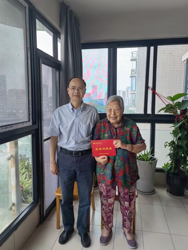 2019级康养产业学院的林涛,2021年,在党的百年华诞之际,作为学校第十一期青马班学员,在离退休工作处郑老师的带领下,以一名青年党员的身份前去慰问刘老师。林涛说:第一次和刘奶奶结缘,奶奶跟我聊了很多,幸福是奋斗出来的,是奶奶传递给我最多的价值观。毕业后留在成都工作,也时常会去拜访奶奶。奶奶善于学习,善于接受新鲜事物,会使用手机微信,高兴的时候还发发朋友圈。94岁的奶奶坚持学习党报党刊,关注国家大事,收听收看党的二十大开幕式,每次交流都会给我阐述最新的理论观点,给我上生动的党课,每次听奶奶谈及信仰二字,都觉得奶奶目光如炬。也正是这种交流,让我这名青年党员,时刻审视着自己的党性,坚定着自己的信仰。