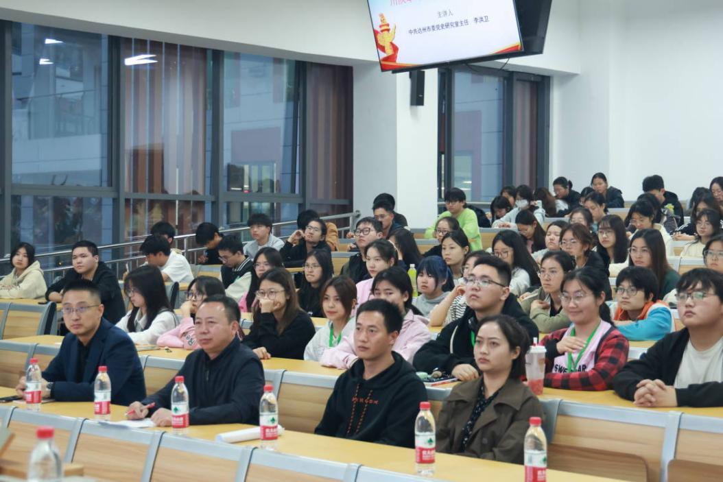 达州市委党史研究室编研科、学生工作部(处)部(处)负责人、公寓管理服务中心老师以及“凤凰山”学生社区150余名同学聆听讲座。