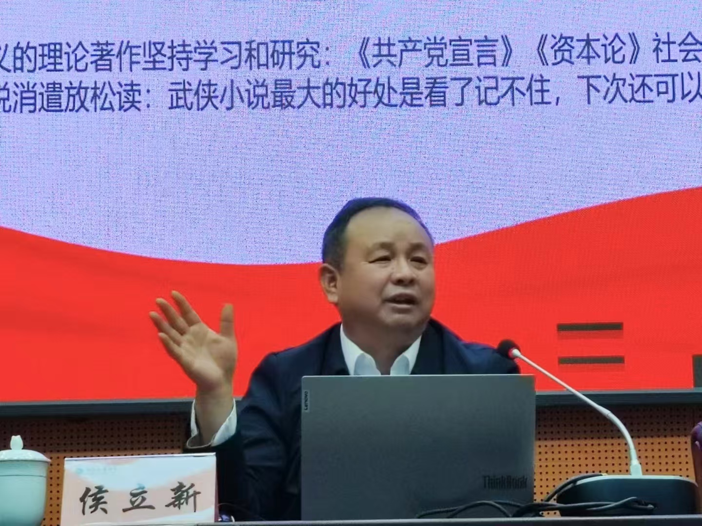 为聚焦“传承红色基因、学思践悟中国共产党人精神谱系”这一主题,全面推进党史、新中国史、改革开放史、社会主义发展史、中华民族发展史和新时代伟大成就有机融入教育教学和思想政治工作各环节,涵养“青年一代”的志气、骨气、底气。11月21日,beat365外国语学院81级优秀校友,原广安市委党史研究室主任,邓小平研究中心主任、市二级巡视员侯立新教授受邀作题为“崇高的风范 深刻的启示——邓小平一生给我们的启示”的宣讲报告。报告会在学术报告厅B厅举行,党委宣传部部长周頔主持报告会。